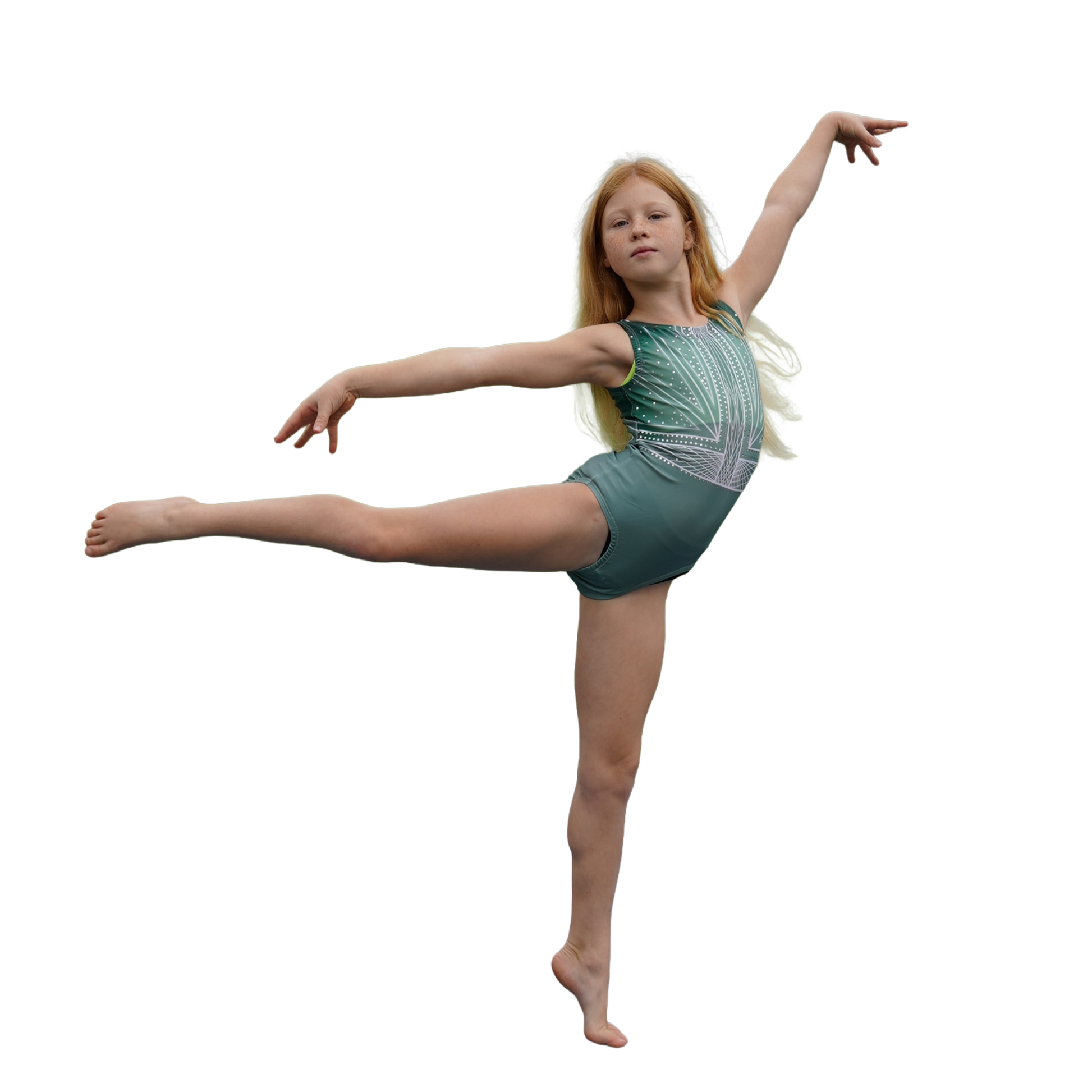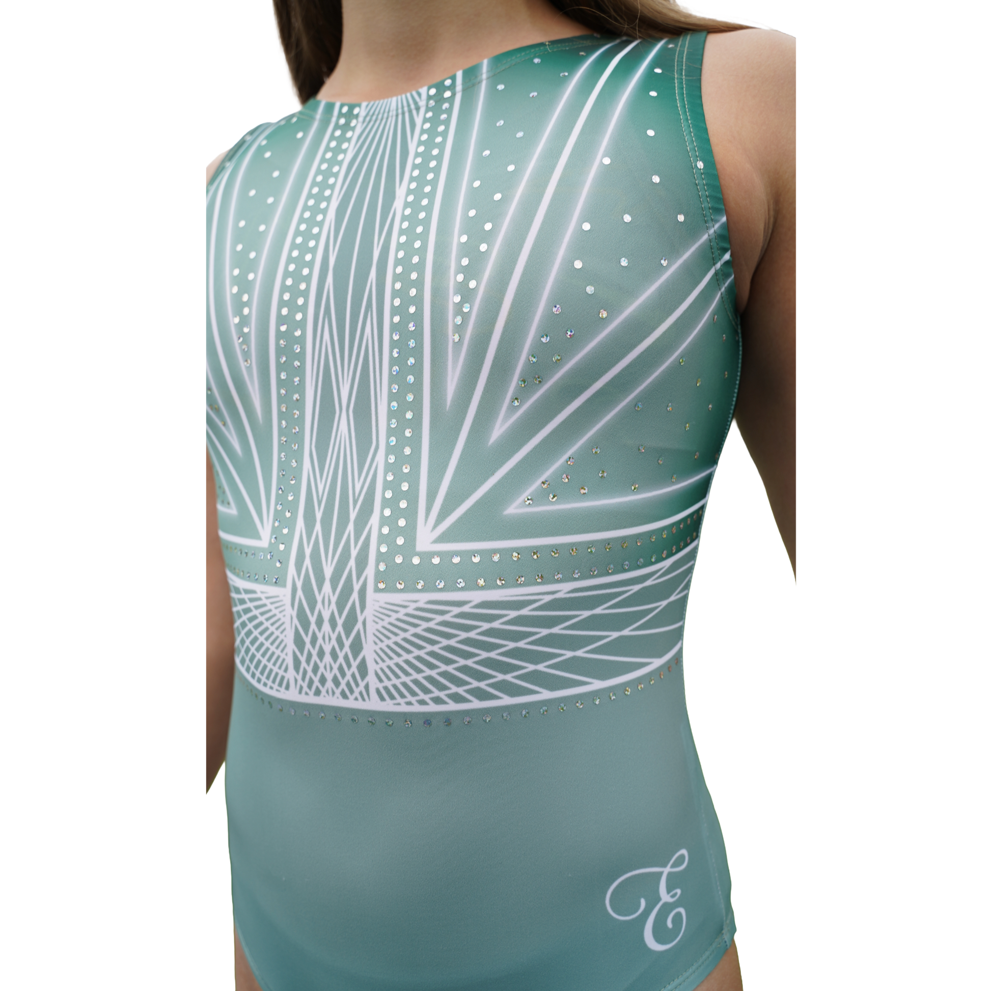 The Mara training leotard features flat glitter sequins that ensure a sparkling appearance during training. This gem captivates with its soft green tone and elegant colour gradient.